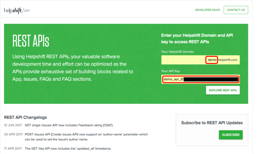 Exploring the REST API with Helpshift's 'API Docs' tool