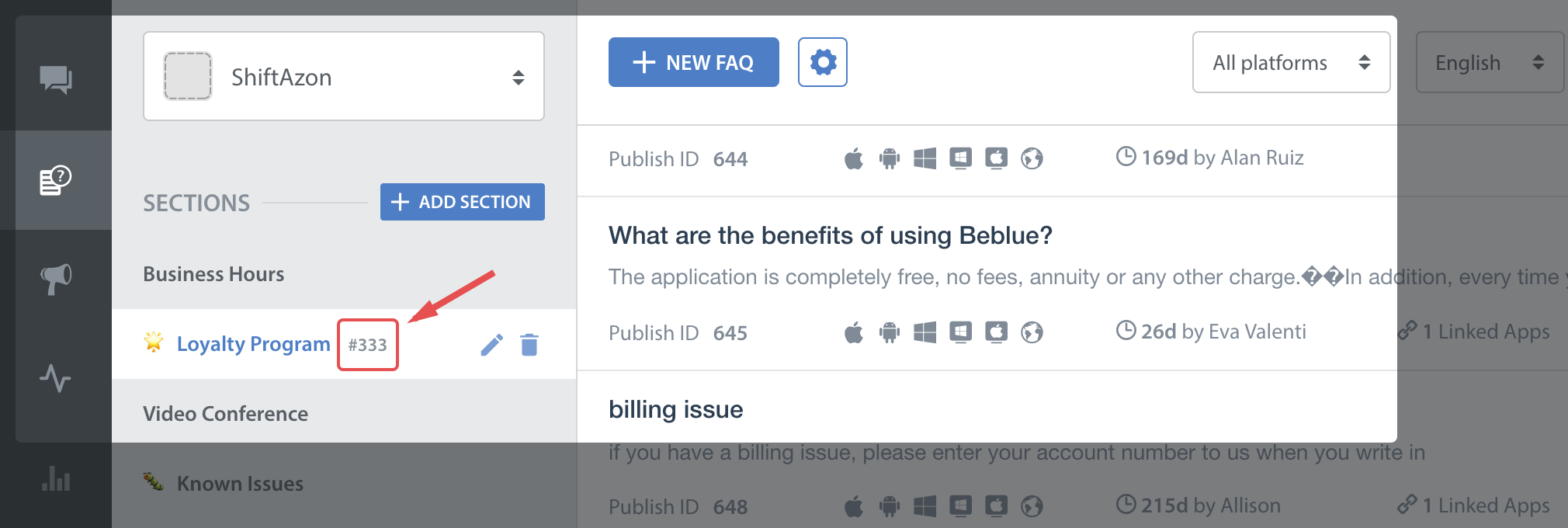 You can use this API to invoke a particular section of your FAQs with its FAQ section publish-id